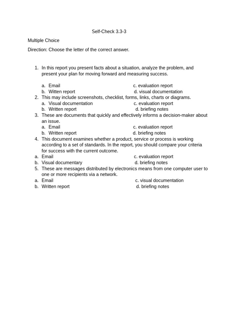 2. Answer Self-check 3.3-1 If you got 100% correct answer in this