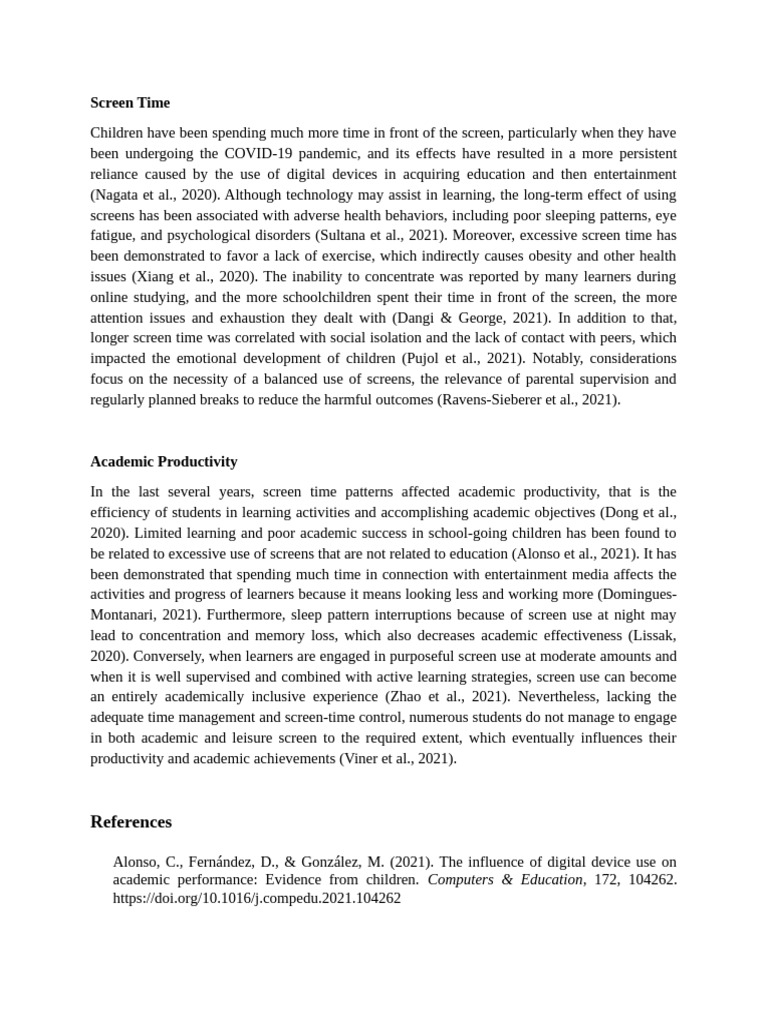 (Dangi & George, 2021). Moreover, spending a lot of time in front of screens is linked to poor