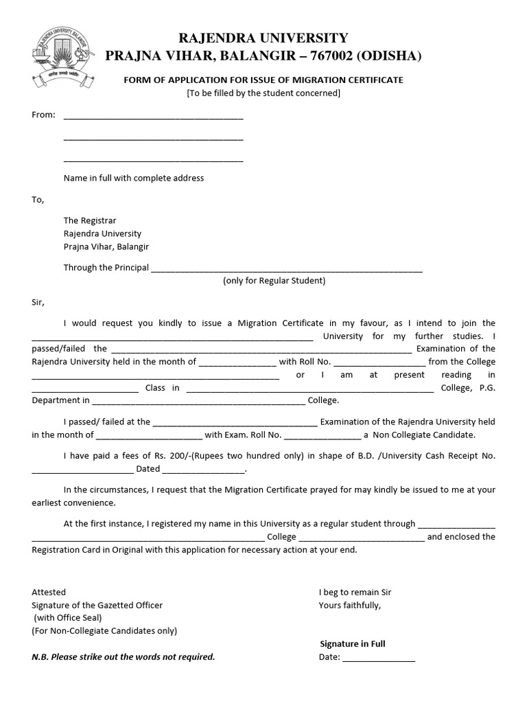 Forwarded to the Registrar, Rajendra University, Prajna Vihar, Balangir together the application of