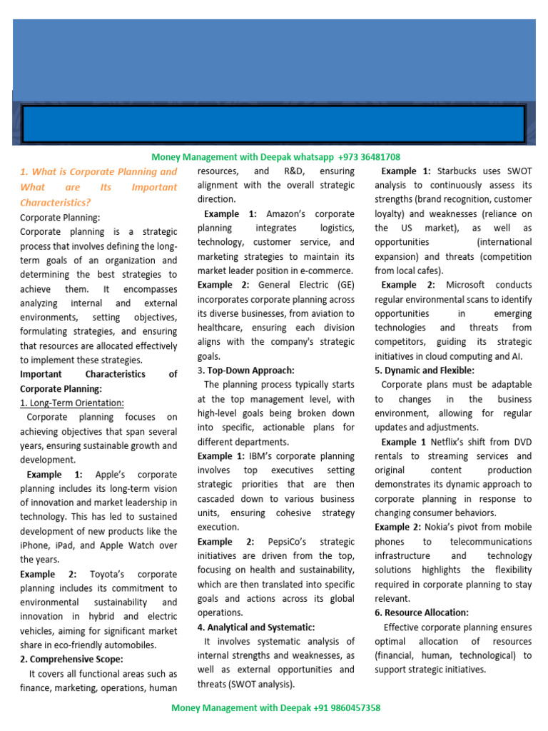 Corporate Planning: The planning process typically starts Corporate plans must be adaptable