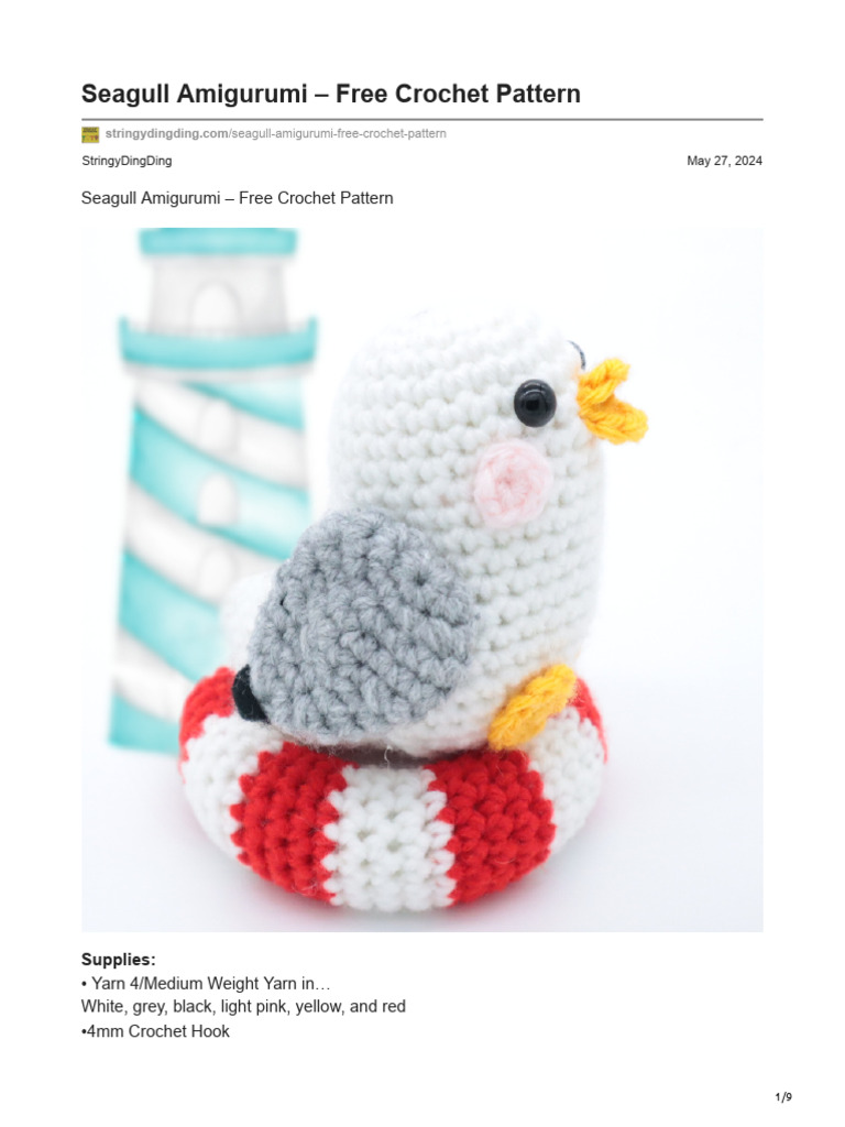 seagull even cuter is that he’s resting on a floatie! This pattern is easy, simple, and quick to