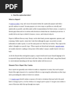 A report is a short document written for a particular purpose or audience. It usually sets out and analyses a