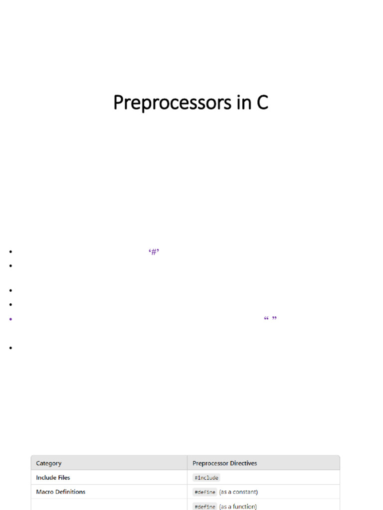 • The classification of C preprocessor directives into four categories can be summarized as: