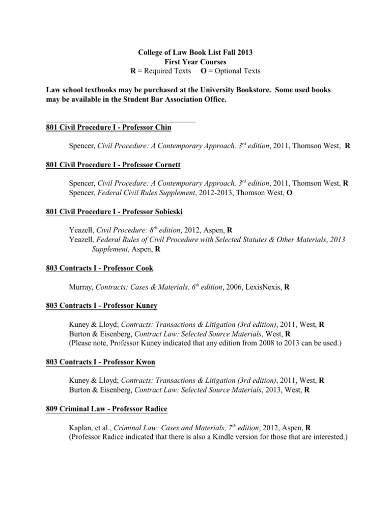 (Please note, Professor Kuney indicated that any edition from 2008 to 2013 can be used.)