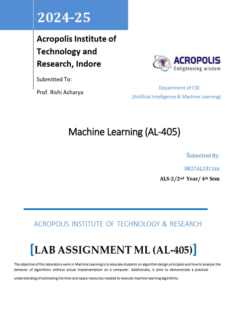 The objective of this laboratory work in Machine Learning is to educate students on algorithm design principles and how to analyze the