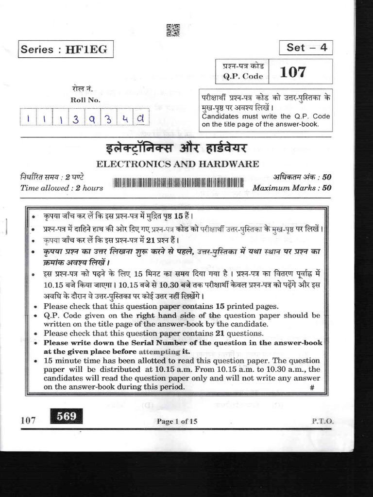 . 15 minute time has been allotted to read this question paper. The question