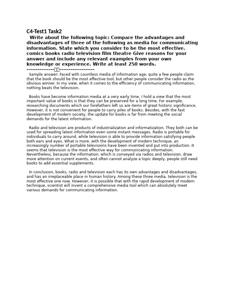 In conclusion, books, radio and television each has its own advantages and disadvantages,
