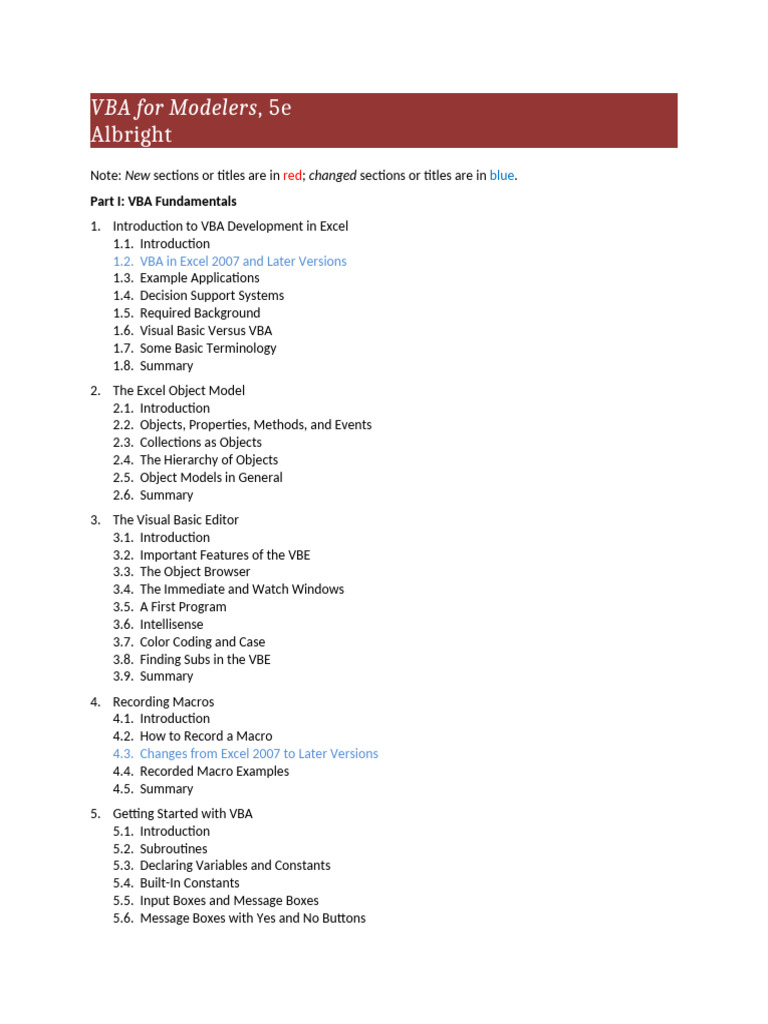 Note: New sections or titles are in red; changed sections or titles are in blue.