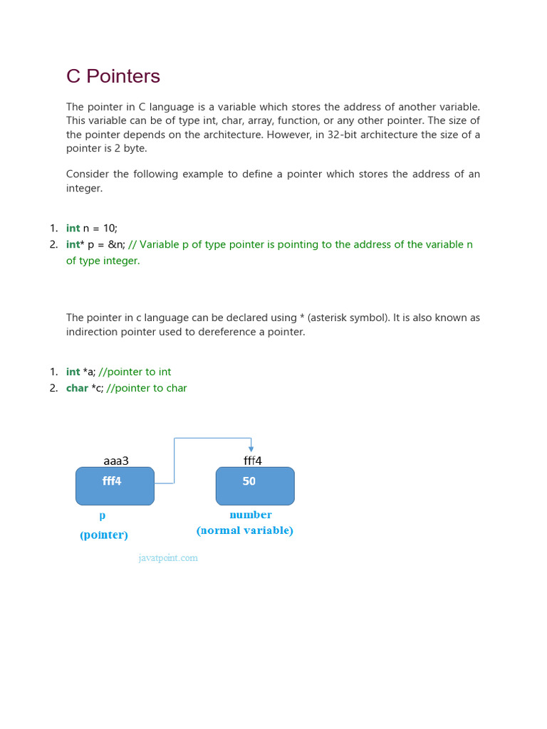 2. int* p = &n; // Variable p of type pointer is pointing to the address of the variable n