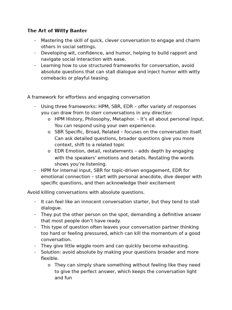 o SBR Specific, Broad, Related – focuses on the conversation itself.