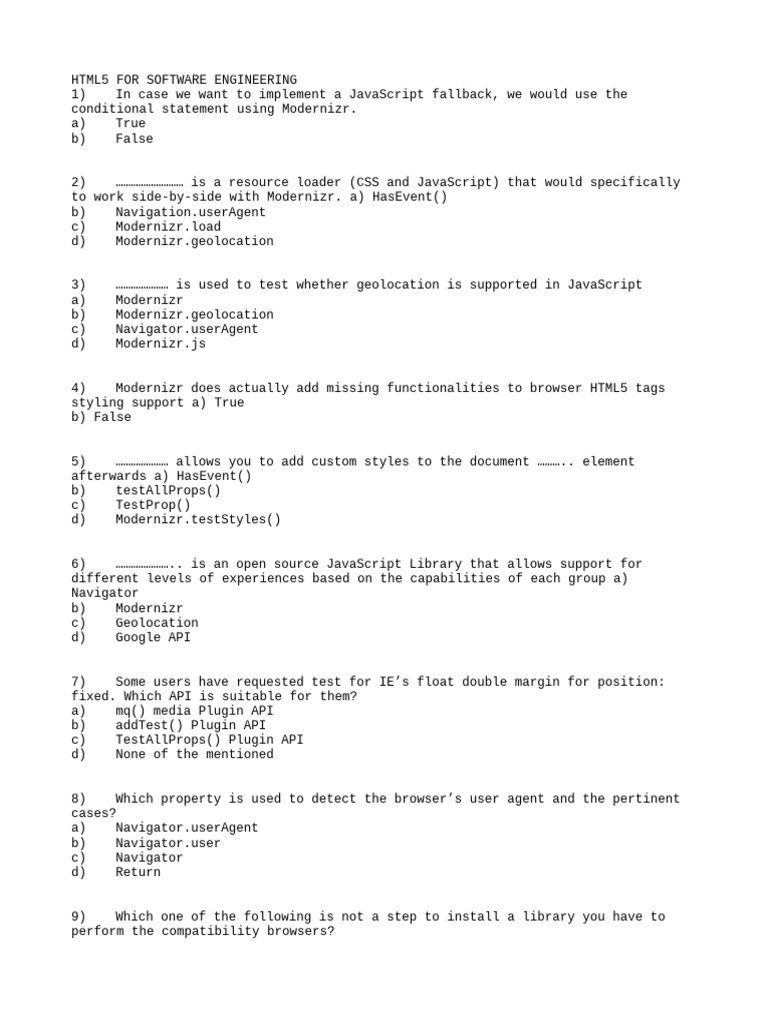 3) ………………… is used to test whether geolocation is supported in JavaScript