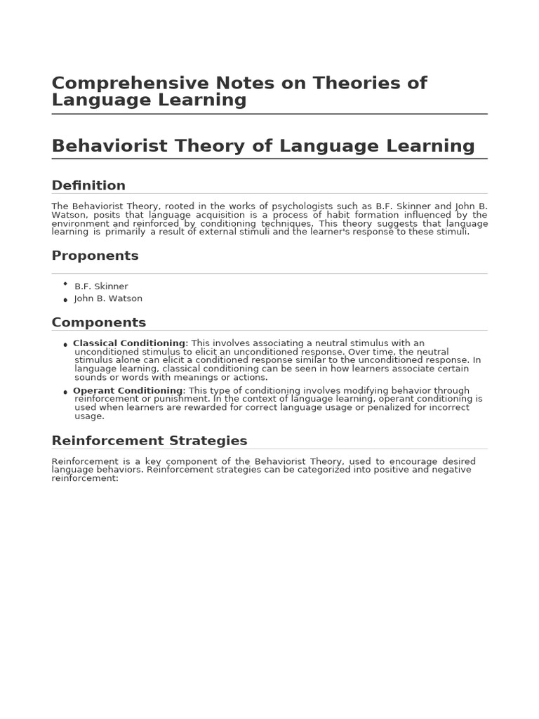 The Behaviorist Theory, rooted in the works of psychologists such as B.F. Skinner and John B.