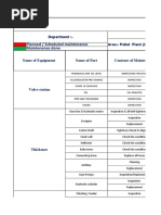 Tag No. Equipmet Name Coal Mill Cleaning Physical Earthing Oil level Oil Temp. Winding Tap Breather Motor Vibration