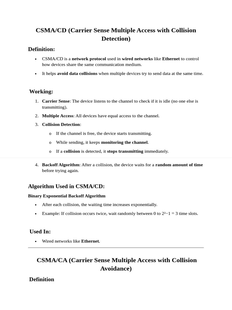 CSMA/CD (Carrier Sense Multiple Access with Collision