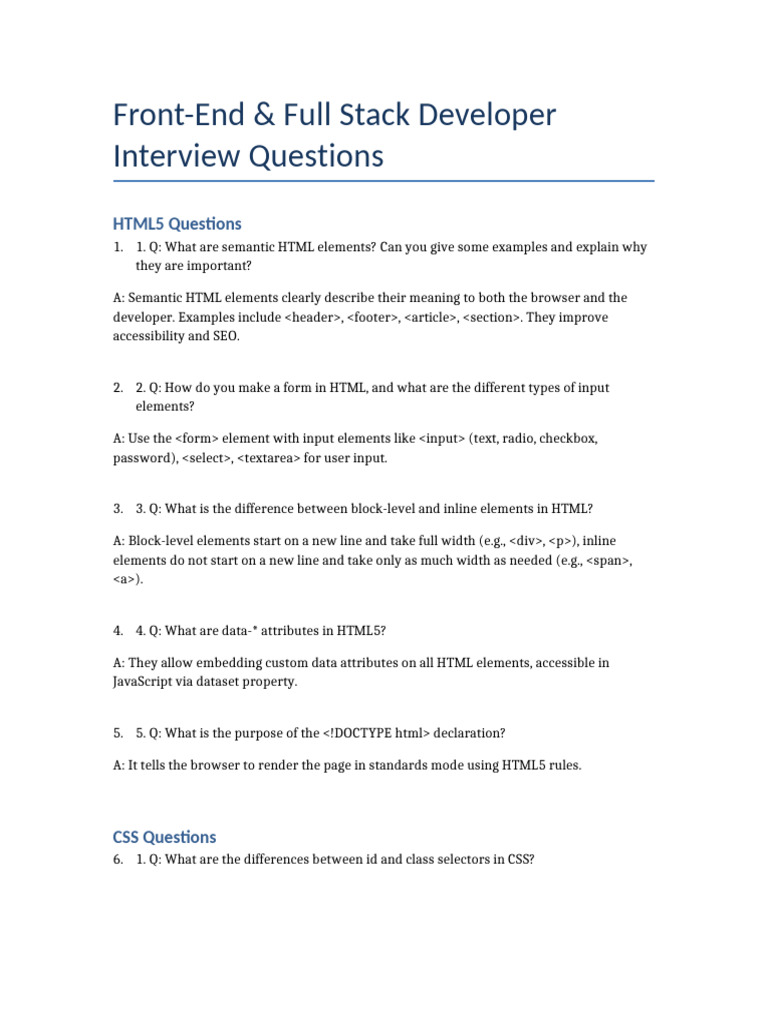 6. 1. Q: What are the differences between id and class selectors in CSS?