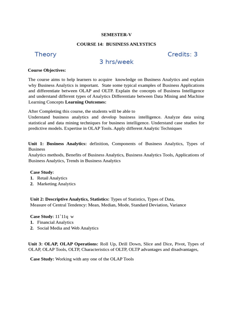 The course aims to help learners to acquire knowledge on Business Analytics and explain