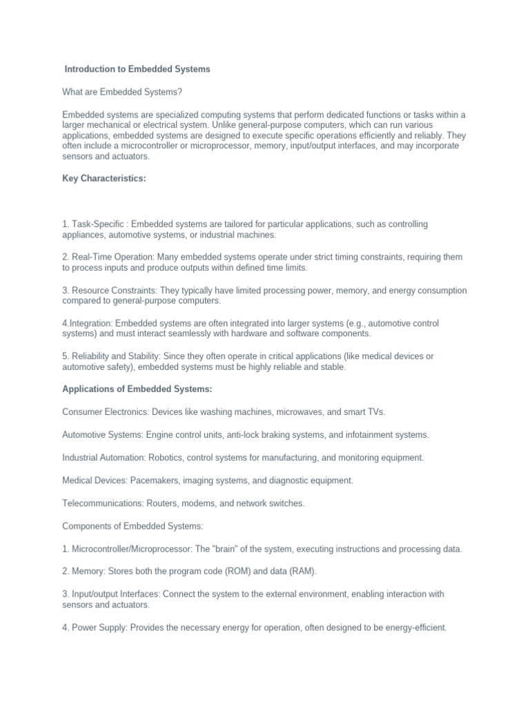Embedded systems are specialized computing systems that perform dedicated functions or tasks within a