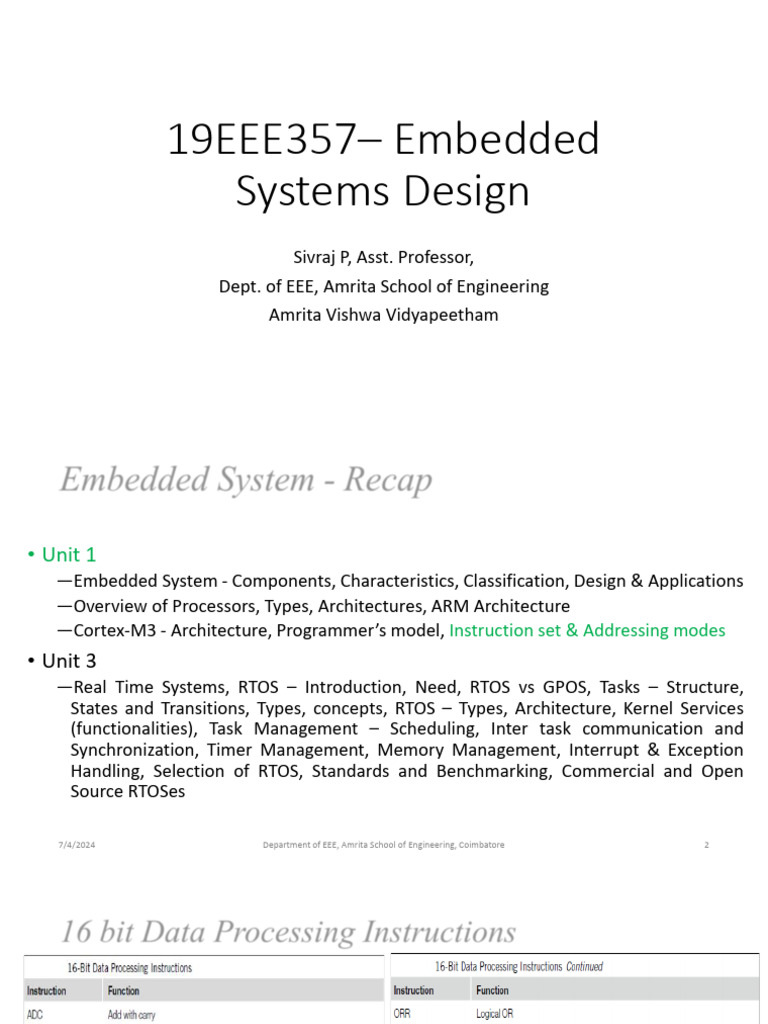 7/4/2024 Department of EEE, Amrita School of Engineering, Coimbatore 2