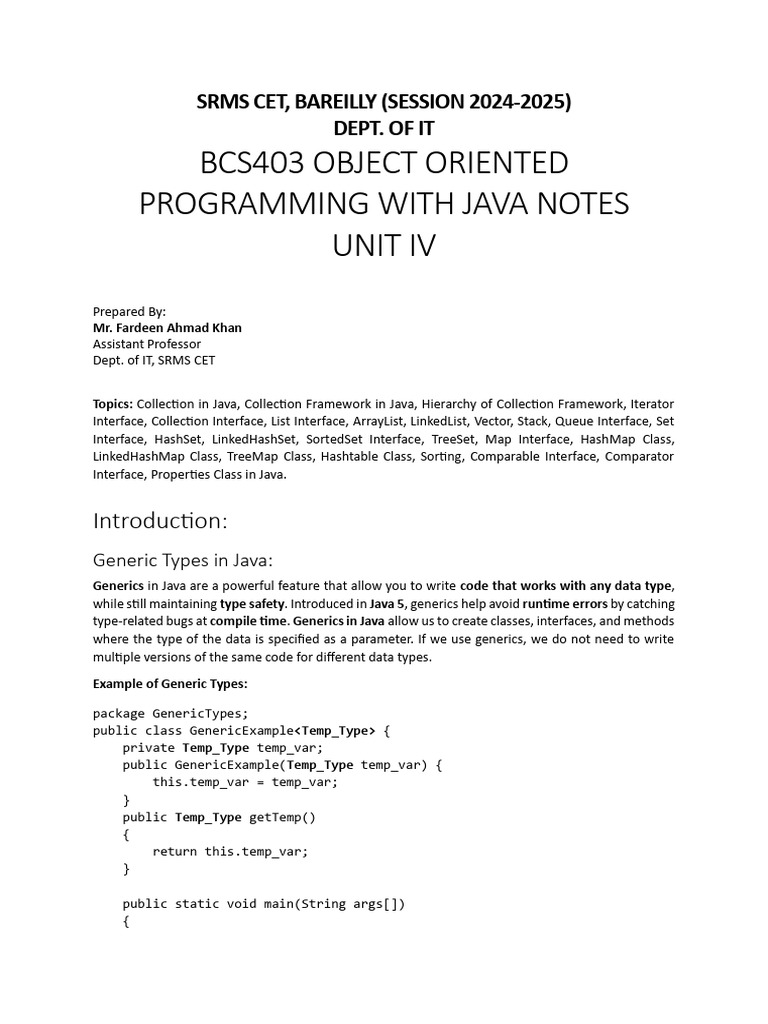 type-related bugs at compile time. Generics in Java allow us to create classes, interfaces, and methods