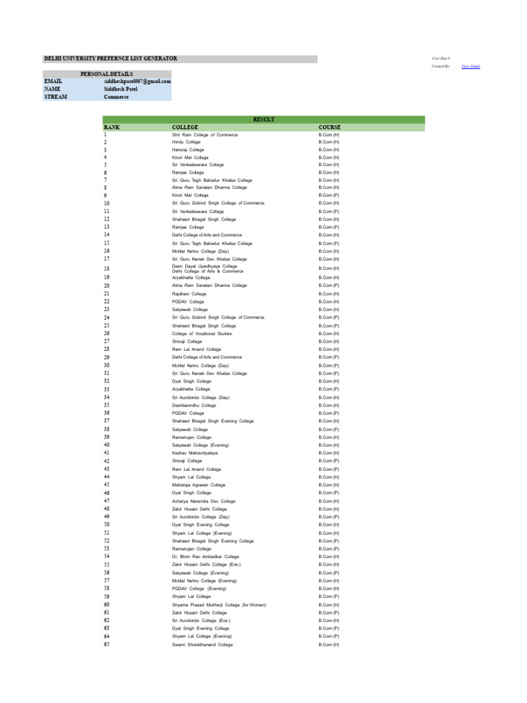 DELHI UNIVERSITY PREFERNCE LIST GENERATOR User Run #