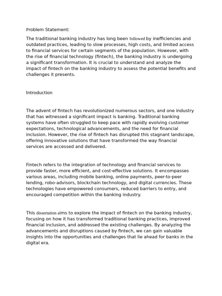 This dissertation aims to explore the impact of fintech on the banking industry,