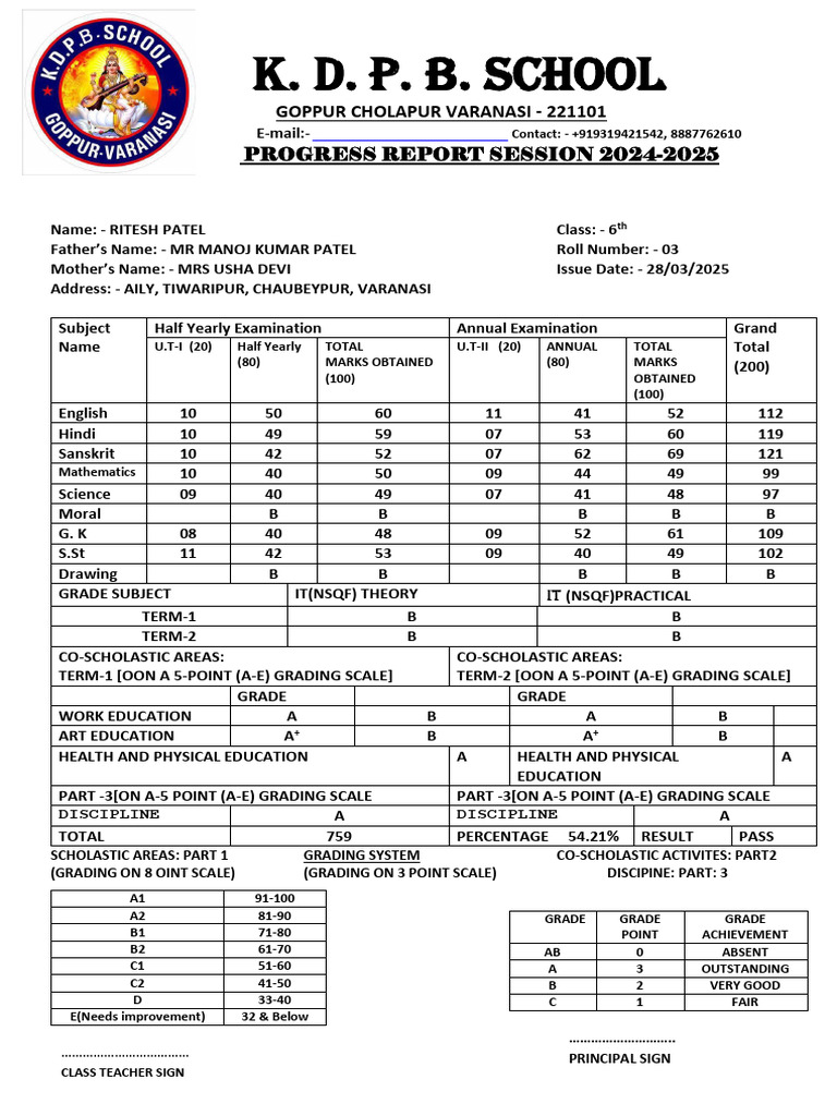 Mother’s Name: - MRS SAVITRI DEVI Issue Date: - 28/03/2025