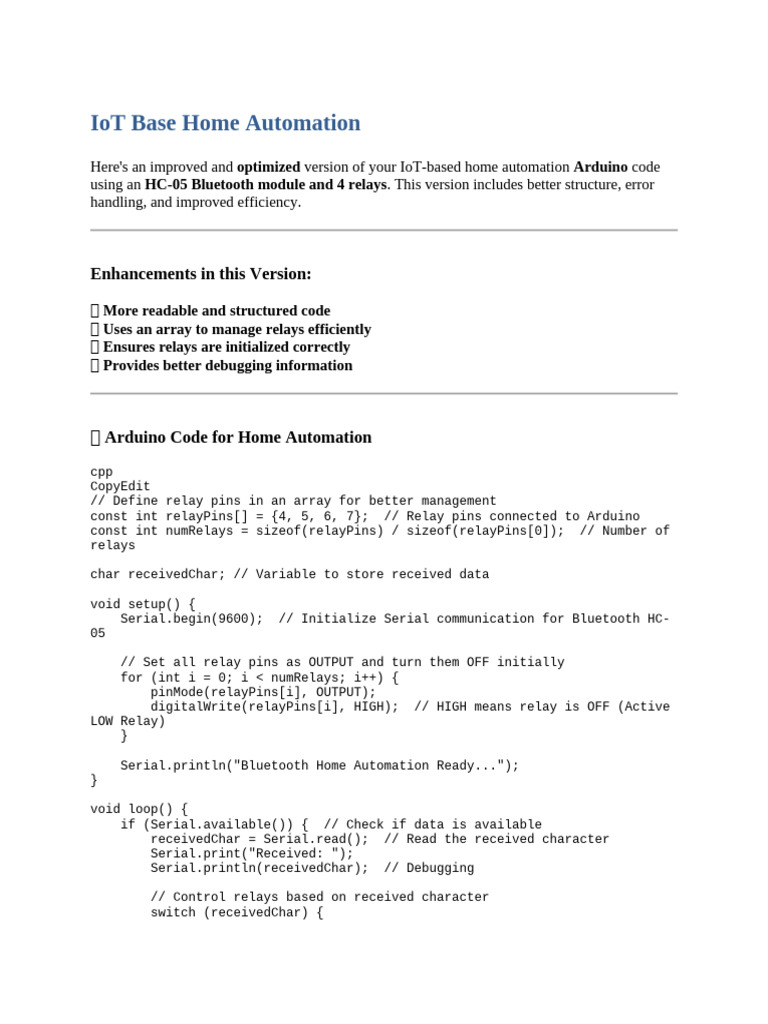 using an HC-05 Bluetooth module and 4 relays. This version includes better structure, error