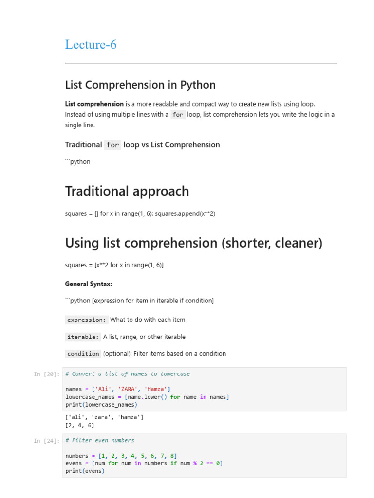 Instead of using multiple lines with a for loop, list comprehension lets you write the logic in a