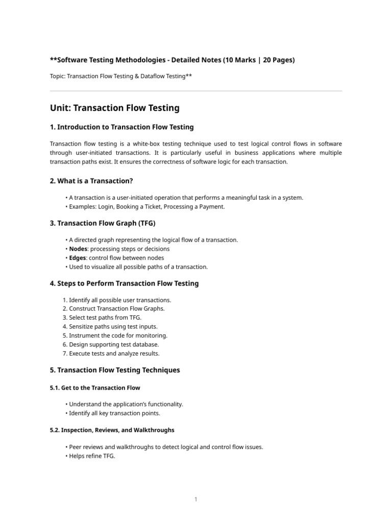 Topic: Transaction Flow Testing & Dataflow Testing**