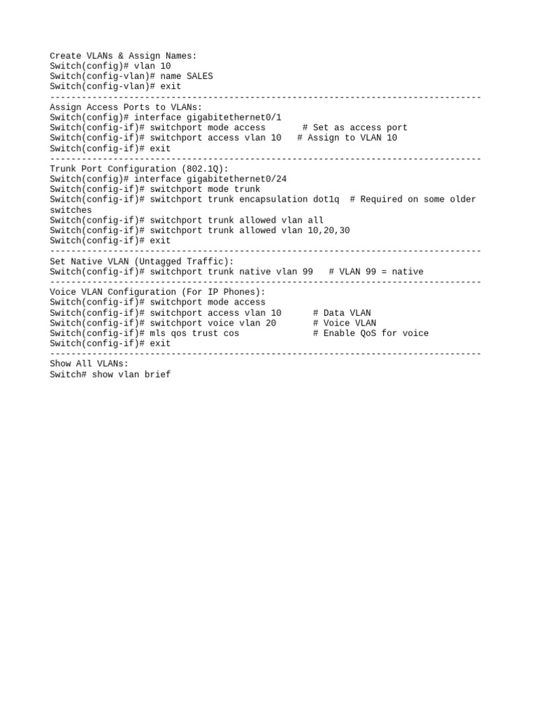 Switch(config-if)# switchport access vlan 10 # Assign to VLAN 10