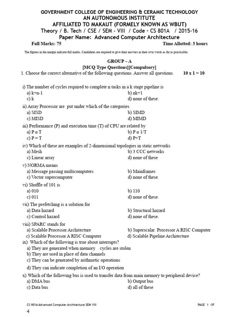 CS 801A Advanced Computer Architecture SEM VIII PAGE 4 OF