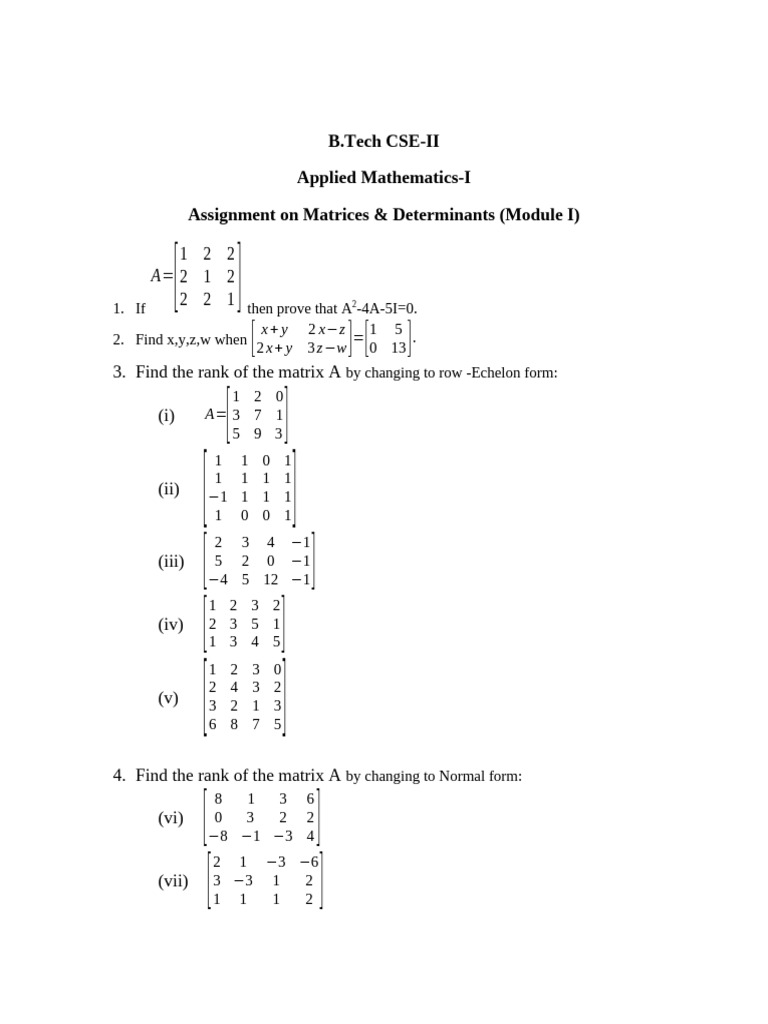 3. Find the rank of the matrix A by changing to row -Echelon form: