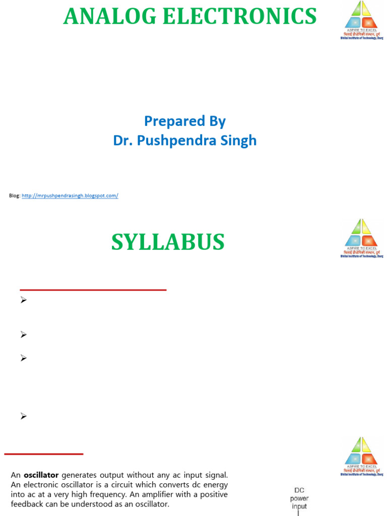 Stabilization of amplitude, Analysis of RC and LC oscillators.