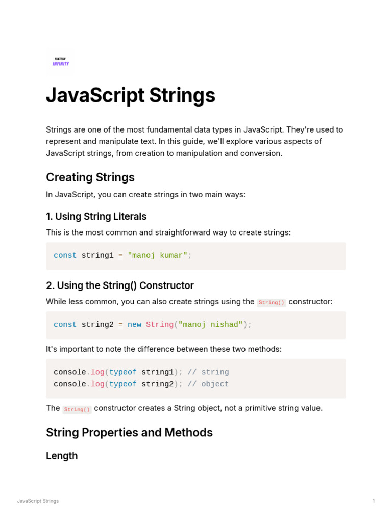 Strings are a fundamental part of JavaScript, and understanding how to create,