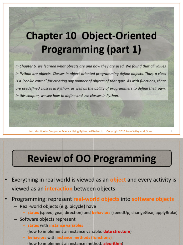 Introduction to Computer Science Using Python – Dierbach Copyright 2013 John Wiley and Sons Section 10.1 What is Object-Oriented Programming?