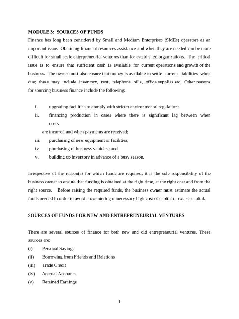 SOURCES OF FUNDS FOR NEW AND ENTREPRENEURIAL VENTURES