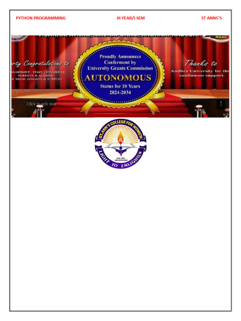 PYTHON PROGRAMMING III YEAR/II SEM MRCET