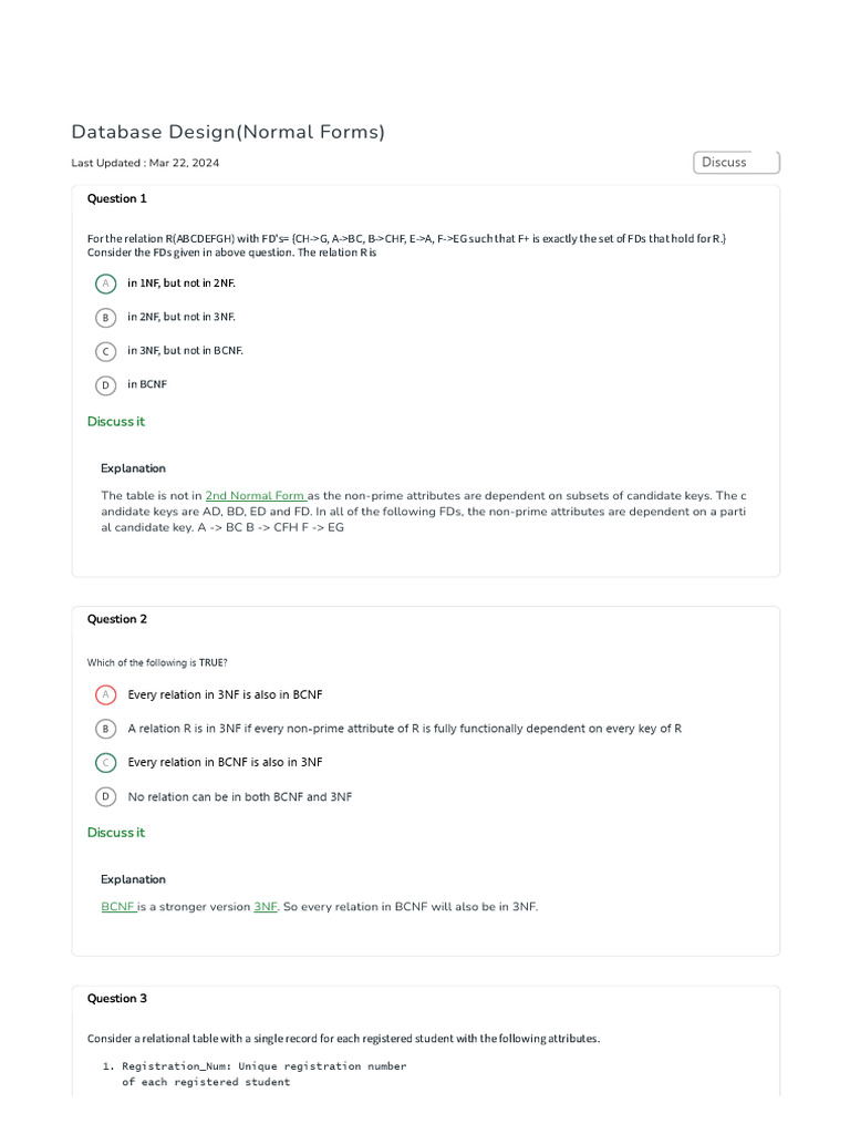 Therefore, BCNF relations are subset of 3NF relations. Means every BCNF relation is 3NF but converse may not tru