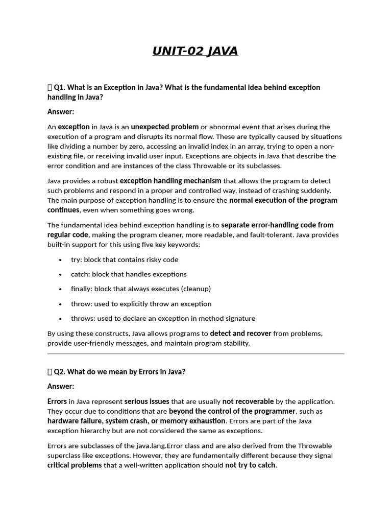 hardware failure, system crash, or memory exhaustion. Errors are part of the Java