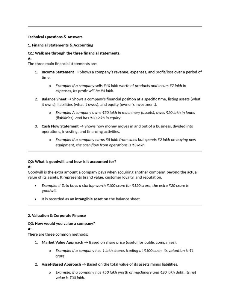 ✔ Know financial concepts well → Be clear on valuation, financial statements, and risk