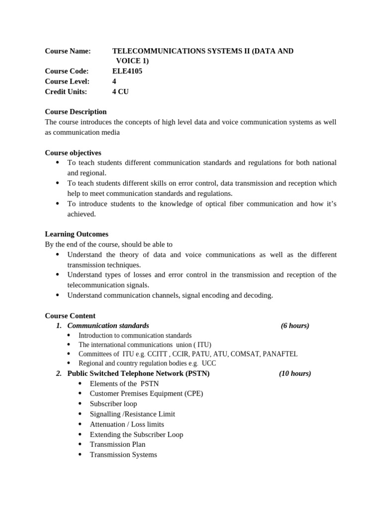 Course Name: TELECOMMUNICATIONS SYSTEMS II (DATA AND