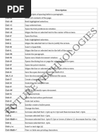 Microsoft Word shortcut keys Ctrl Ctrl Ctrl Ctrl Ctrl Ctrl Ctrl Ctrl Ctrl Ctrl Ctrl Ctrl Ctrl Ctrl Ctrl Ctrl Ctrl Ctrl Ctrl Ctrl Ctrl Ctrl + + + + + + + + + + + + + + + + + + + + + + 0 A B C E F I J K L M P R T U V X Y Z Shift + L Shift + F Shift + > Adds or removes 6pts of spacing before a paragraph. Select all contents of the page. Bold highlighted selection. Copy selected text. Aligns the line or selected text to the center of the screen. Open find box. Italic highlighted selection. Aligns the selected text or line to justify the screen. Insert link. Aligns the line or selected text to the left of the screen. Indent the paragraph. Open the print window. Aligns the line or selected text to the right of the screen. Create a hanging indent. Underline highlighted selection. Paste. Cut selected text. Redo the last action performed. Undo last action. Quickly create a bullet point. Change the font. Increase selected font +1pts up to 12pt and then increases font +2pts. Increase selected font +1pts. Decrease selected font -1pts if 12pt or lower, if above 12 decreases font by +2pt. Decrease selected font -1pts. Insert a cent sign (). Insert a character with an accent (grave) mark, where <char> is the character you want. For example, if you wanted an accented you would use Ctrl + ' + e as your shortcut key. To reverse the accent mark use the opposite accent mark, often on the tilde key. View or hide non printing characters. Moves one word to the left. Moves one word to the right. Moves to the beginning of the line or paragraph. Moves to the end of the paragraph. Deletes word to right of cursor. Deletes word to left of cursor. Moves the cursor to the end of the document. Moves the cursor to the beginning of the document. Reset highlighted text to the default font. Single-space lines. Double-space lines. 1.5-line spacing. Changes text to heading 1. Changes text to heading 2.