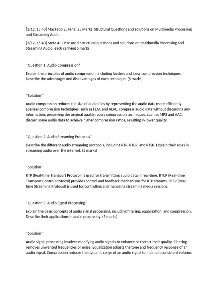[1/12, 15:48] MacTebo Eugene: Four 4 marks Question and solutions on basic Multimedia Audio