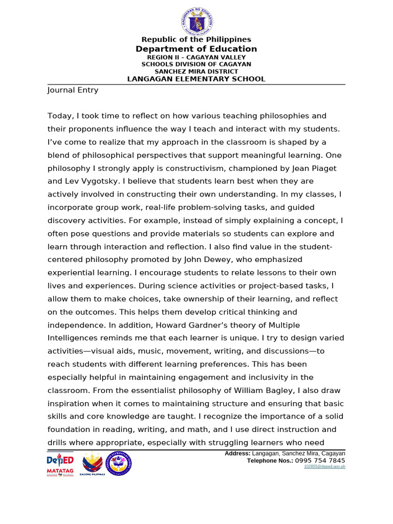 Today, I took time to reflect on how various teaching philosophies and