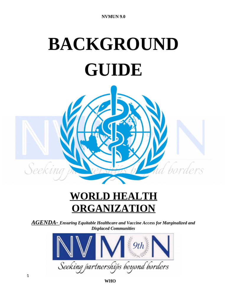 It is our utmost pleasure to welcome you to the World Health Organization at NVMUN. As your