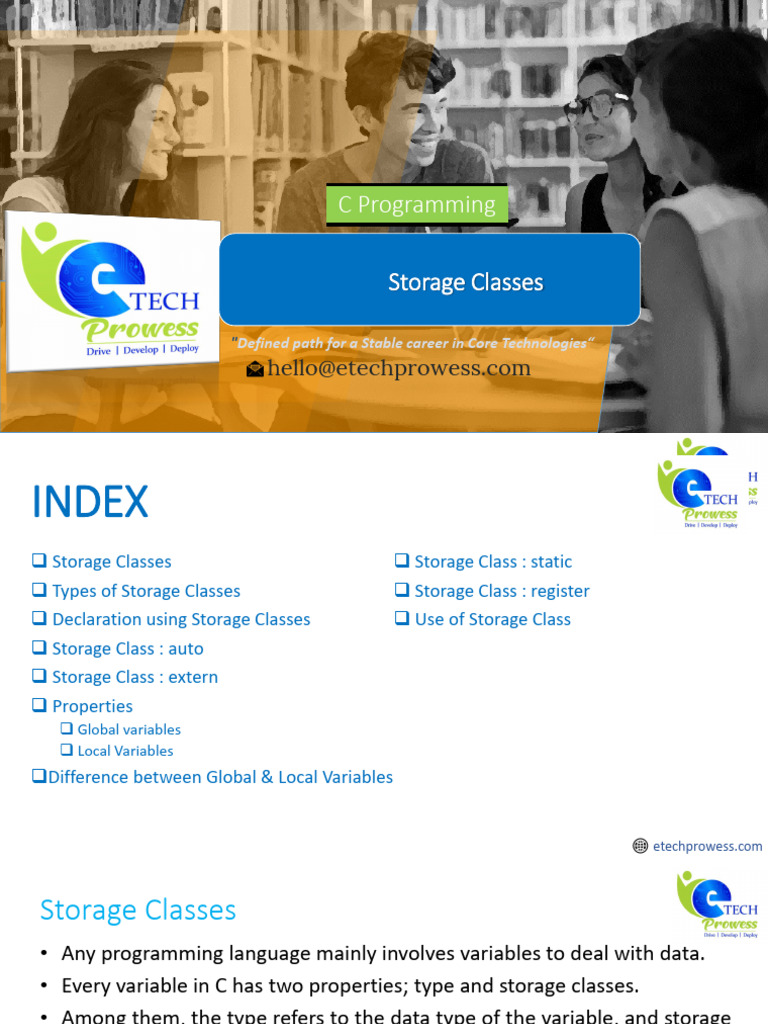 ❑ Declaration using Storage Classes ❑ Use of Storage Class