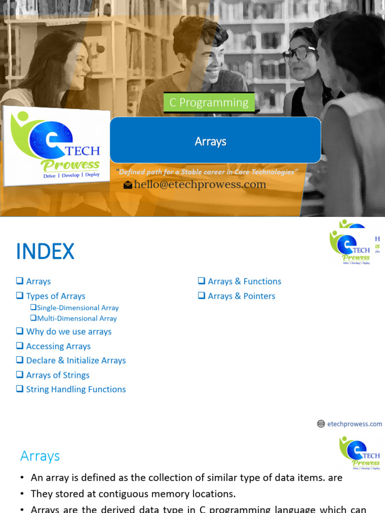 • Example: In a given data of exam conducted by a school, using arrays it is easy to