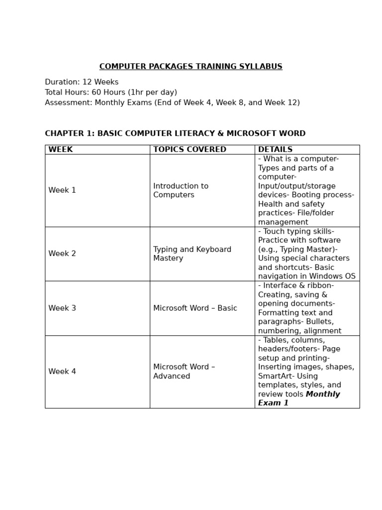 COMPUTER PACKAGES TRAINING SYLLABUS