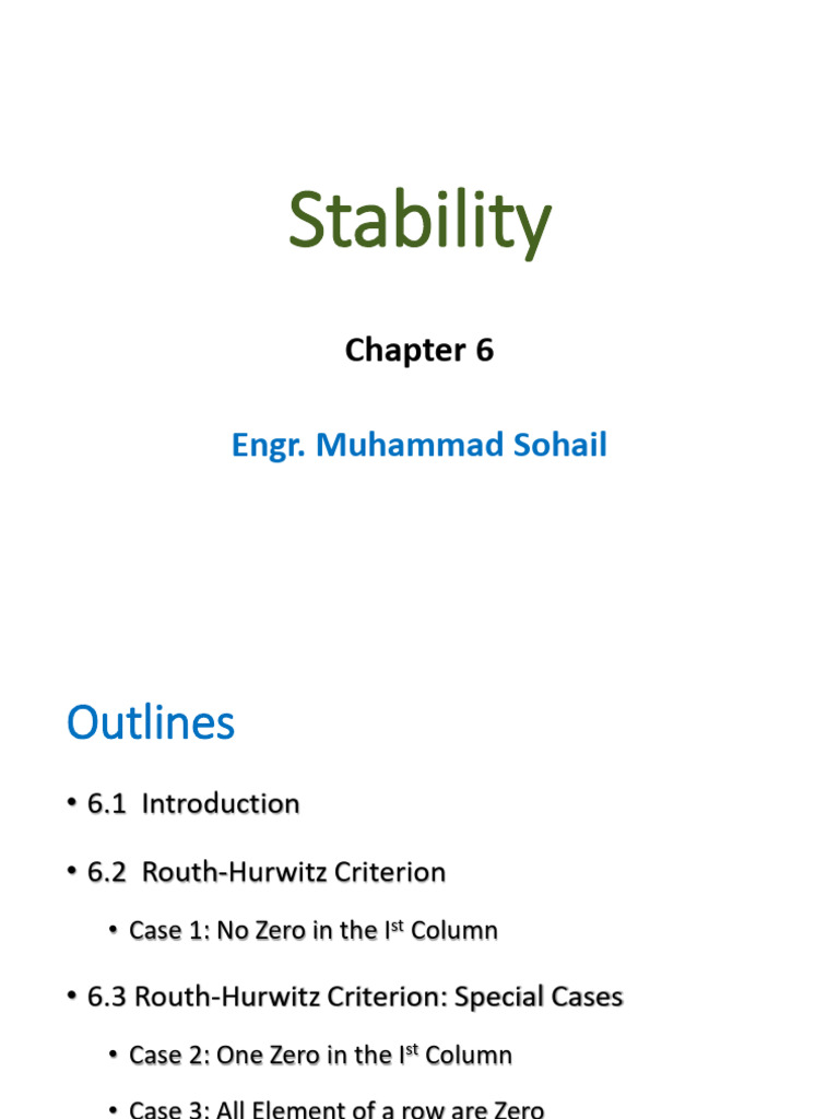 • 6.3 Routh-Hurwitz Criterion: Special Cases