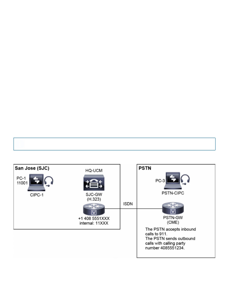 (CIPC-1 running on PC-1). Further, the cluster is preconfigured to route emergency calls (dialed as 9.911) to the